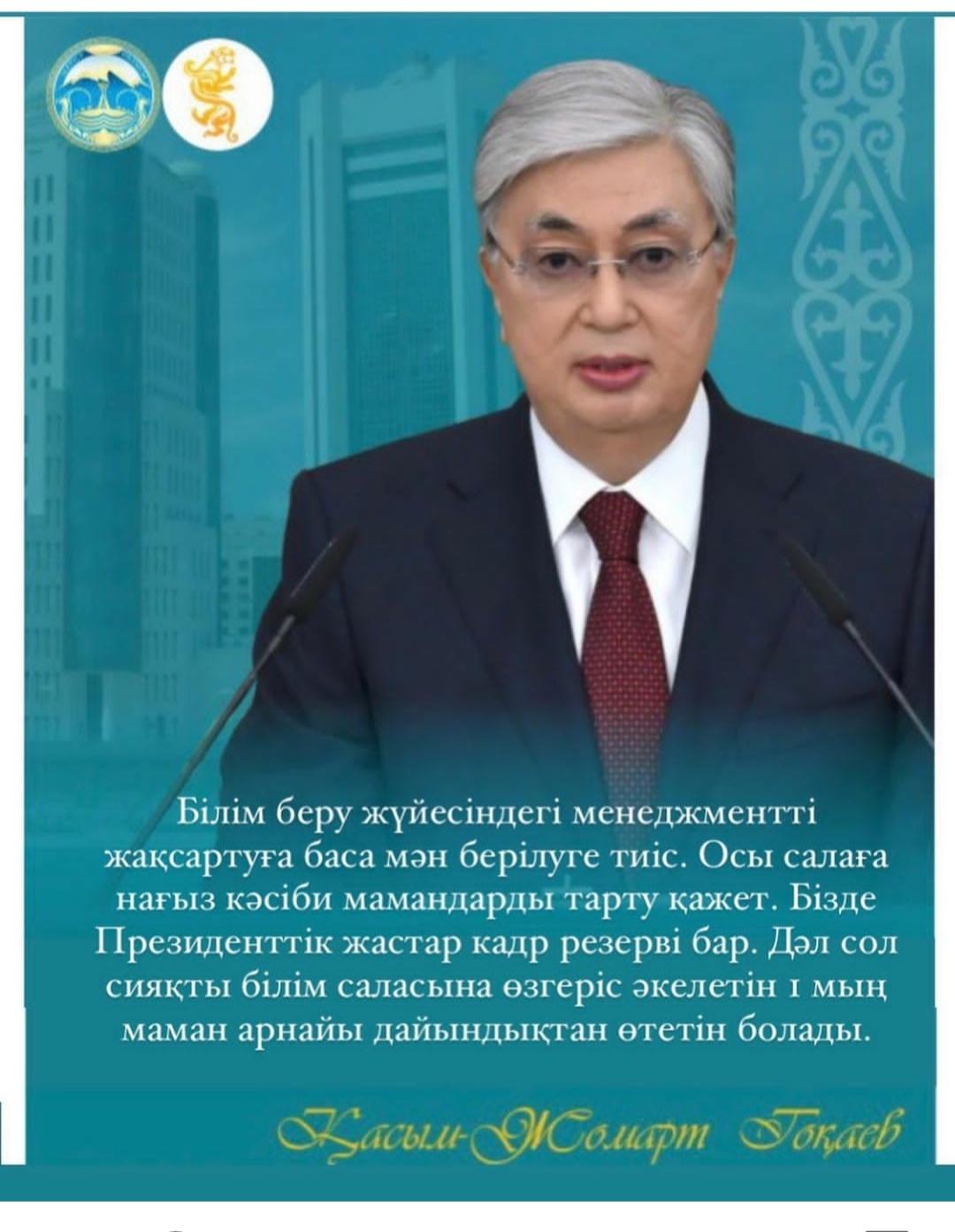 Мемлекет басшысы Қасым-Жомарт Тоқаев VII сайланған Парламенттің бірінші сессиясында білім саласы туралы: