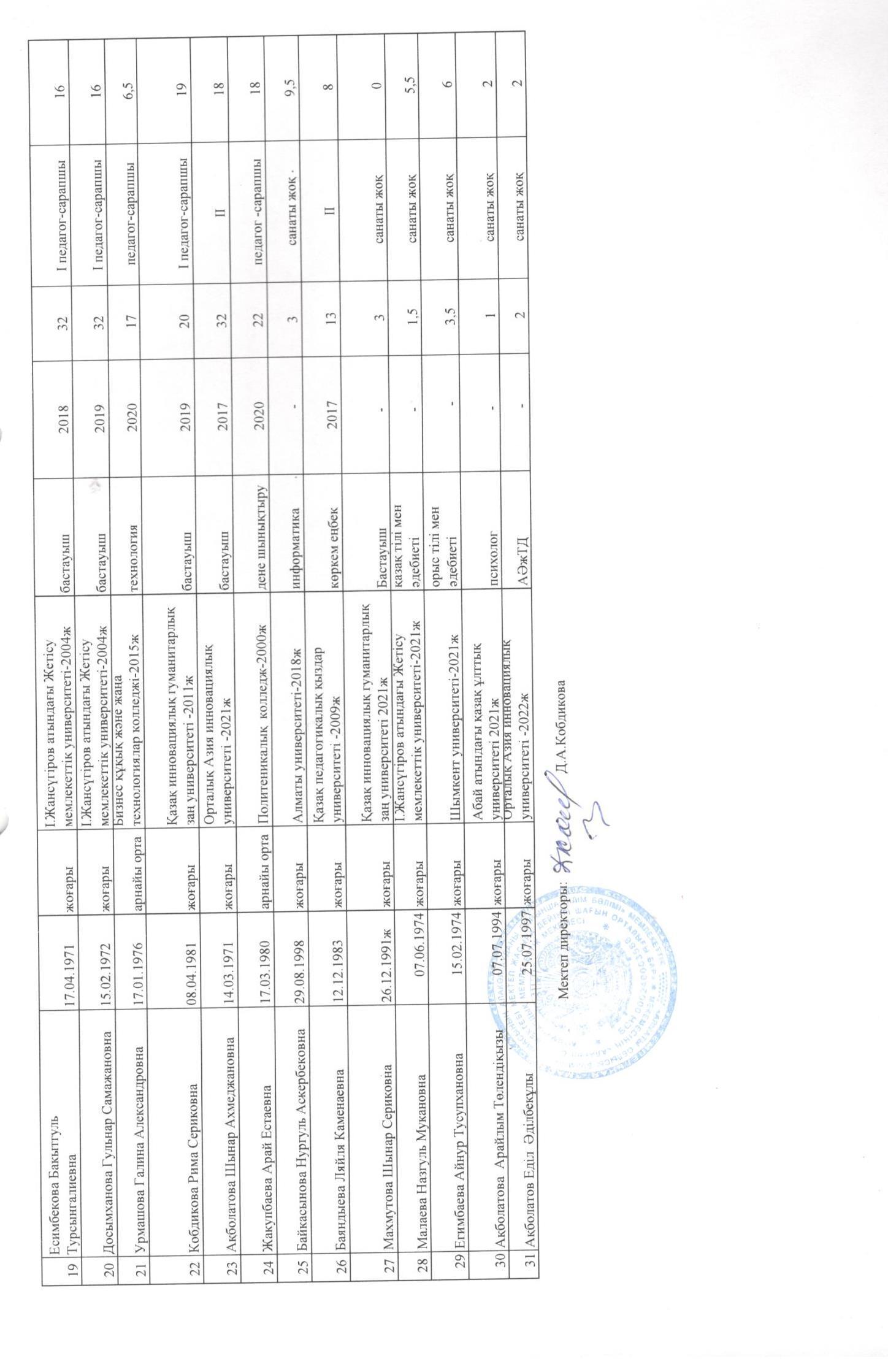 мектептегі мұғалімдердің сандық- сапалық кұрамы » Алакөл орта мектебі